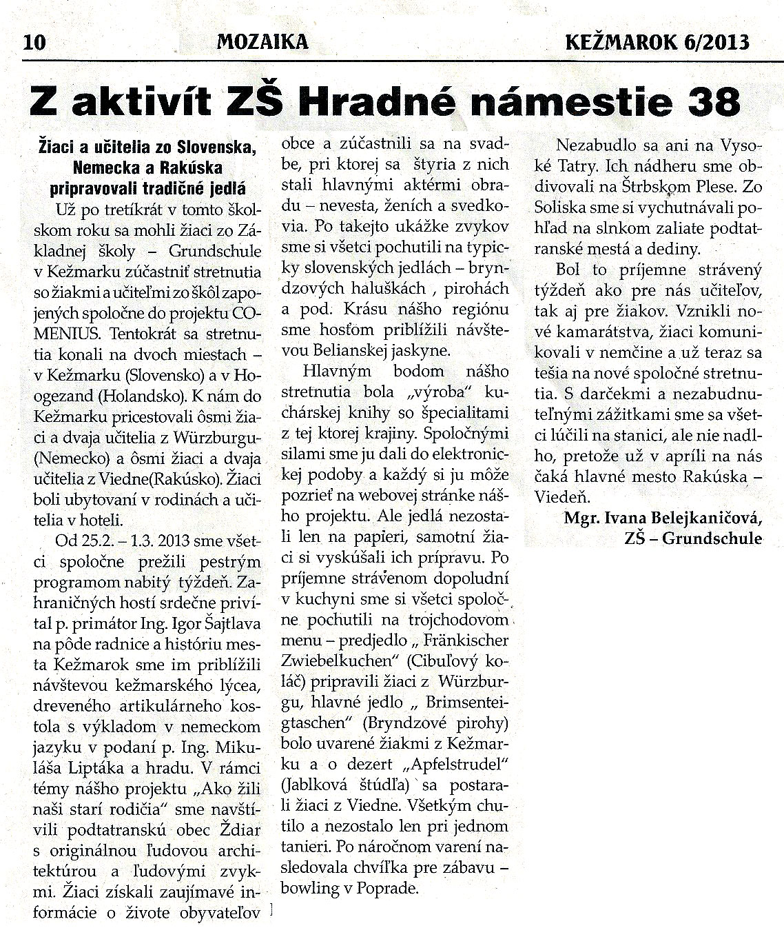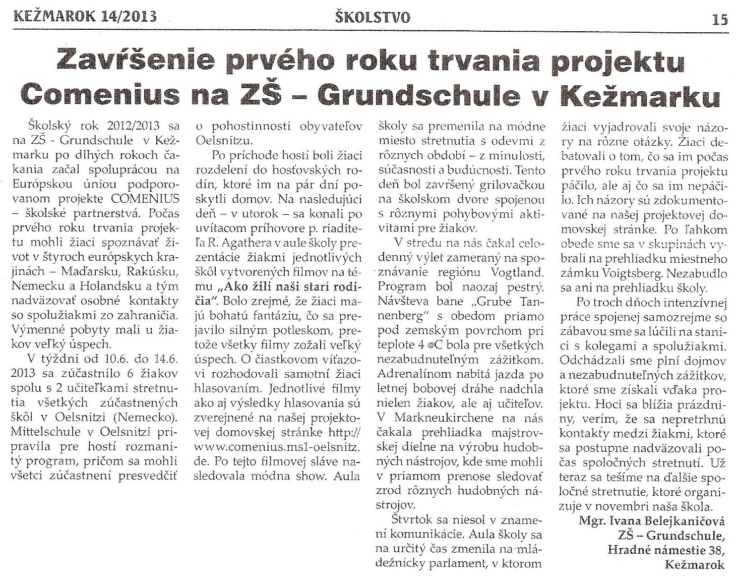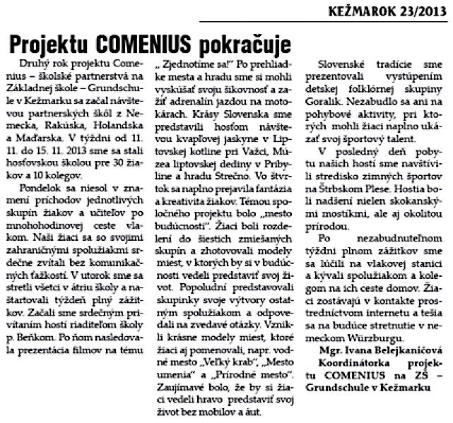 In der Woche vom 10. Juni bis 14. Juni 2013 war die Mittelschule Oelsnitz im Rahmen des COMENIUS- Programmes Gastgeber für Schüler und Lehrer aus den Niederlanden, der Slowakei, Österreich, Ungarn und der BRD.